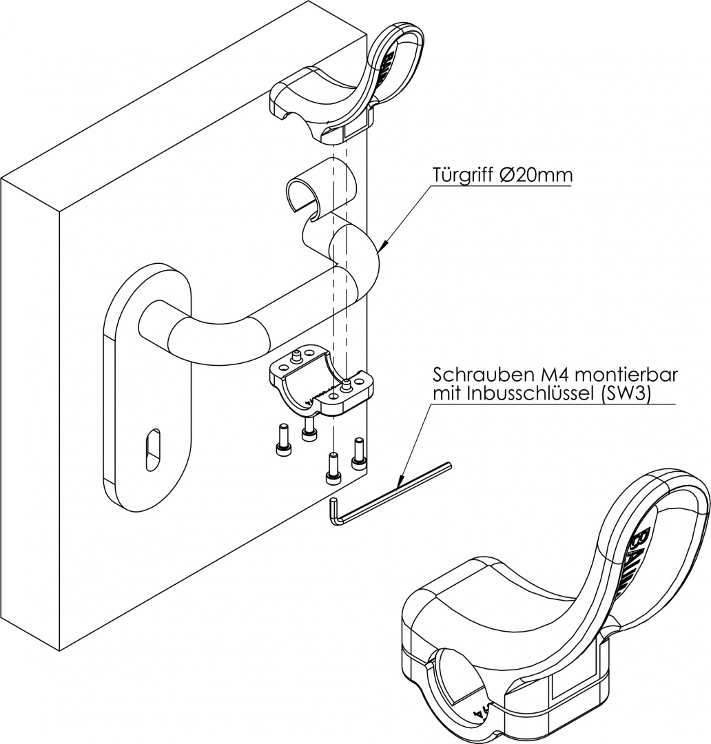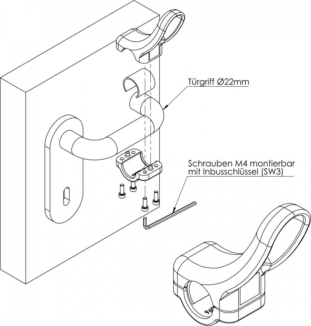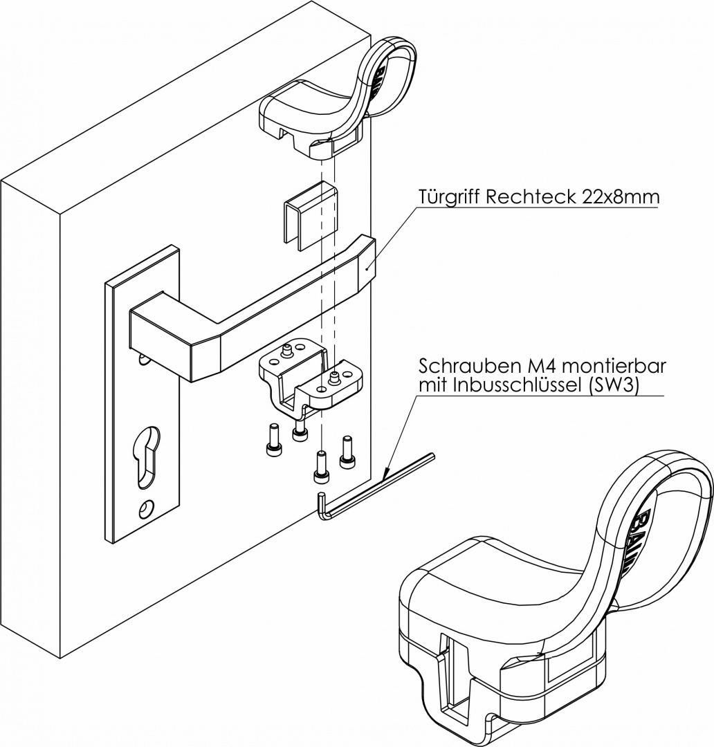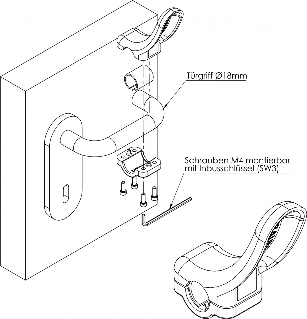 Der Türgriff Aufsatz ist nicht für Türen in Fluchtwegen, sowie Feuer- und Rauchschutztüren geeignet.