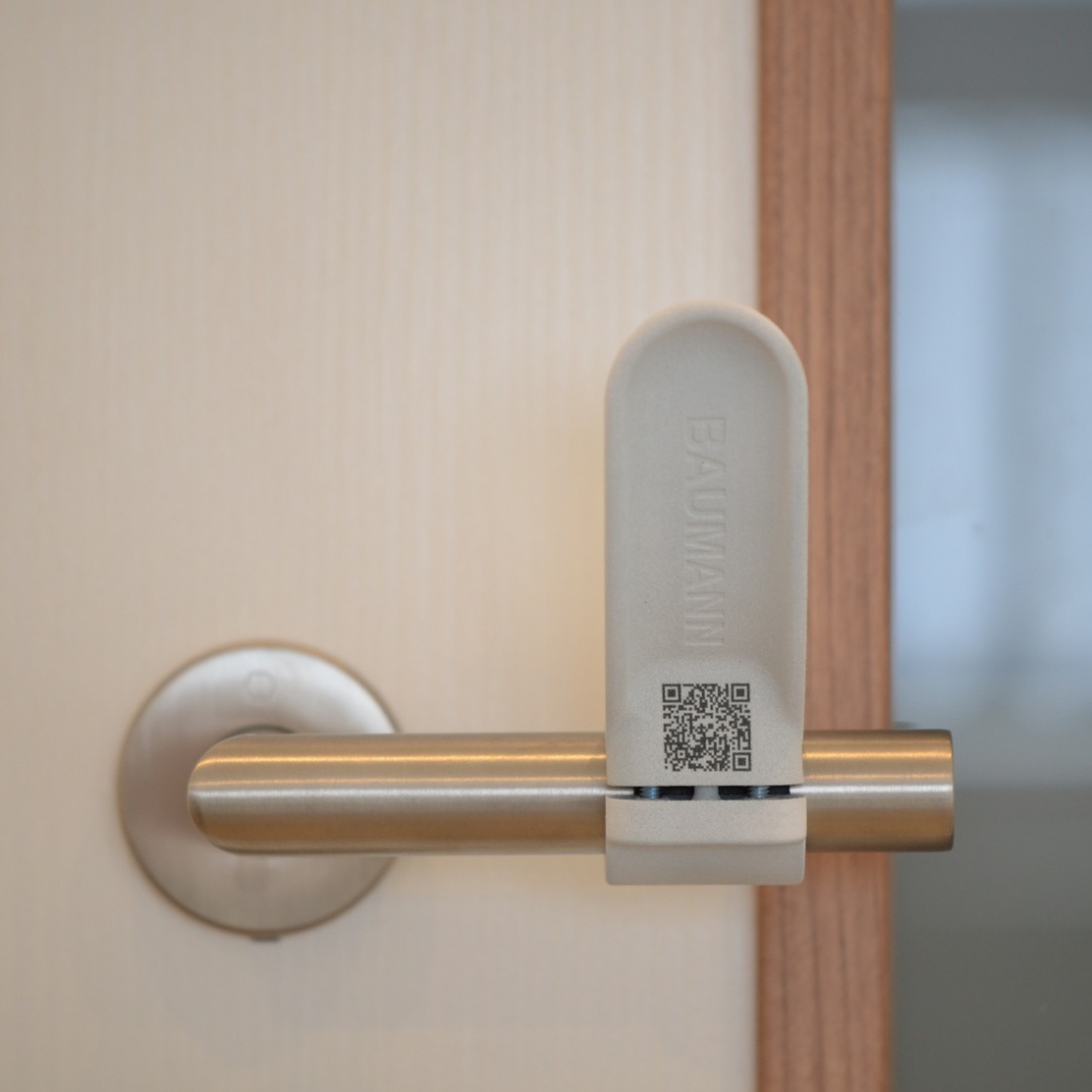Durch die mitgelieferte Gummieinlage sitzt der Aufsatz stabil auf der Türklinke und verrutscht nicht.