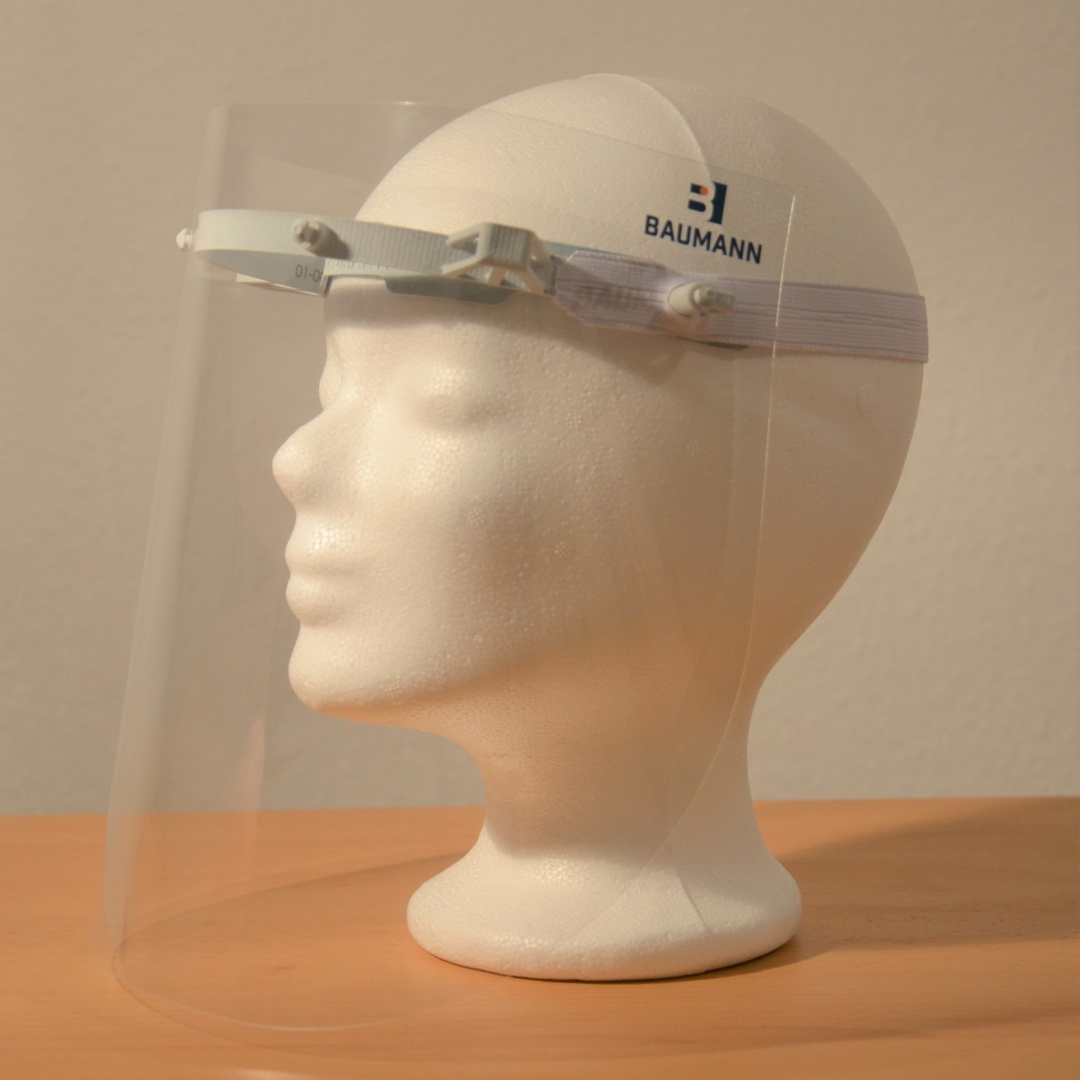 Die Ingenieure von BAUMANN aus dem Bereich der Medizintechnik leisten hervorragende Arbeiten bei der Entwicklung innovativer Schutzausrüstung. Hier entstehen beispielsweise wiederverwendbare Gesichtsschutze aus biokompatiblem Kunststoff mit FDA-Zulassung (ISO10993-1) und Hygiene Türöffner welche als Schutz zur Ausbreitung von COVID-19 beitragen.